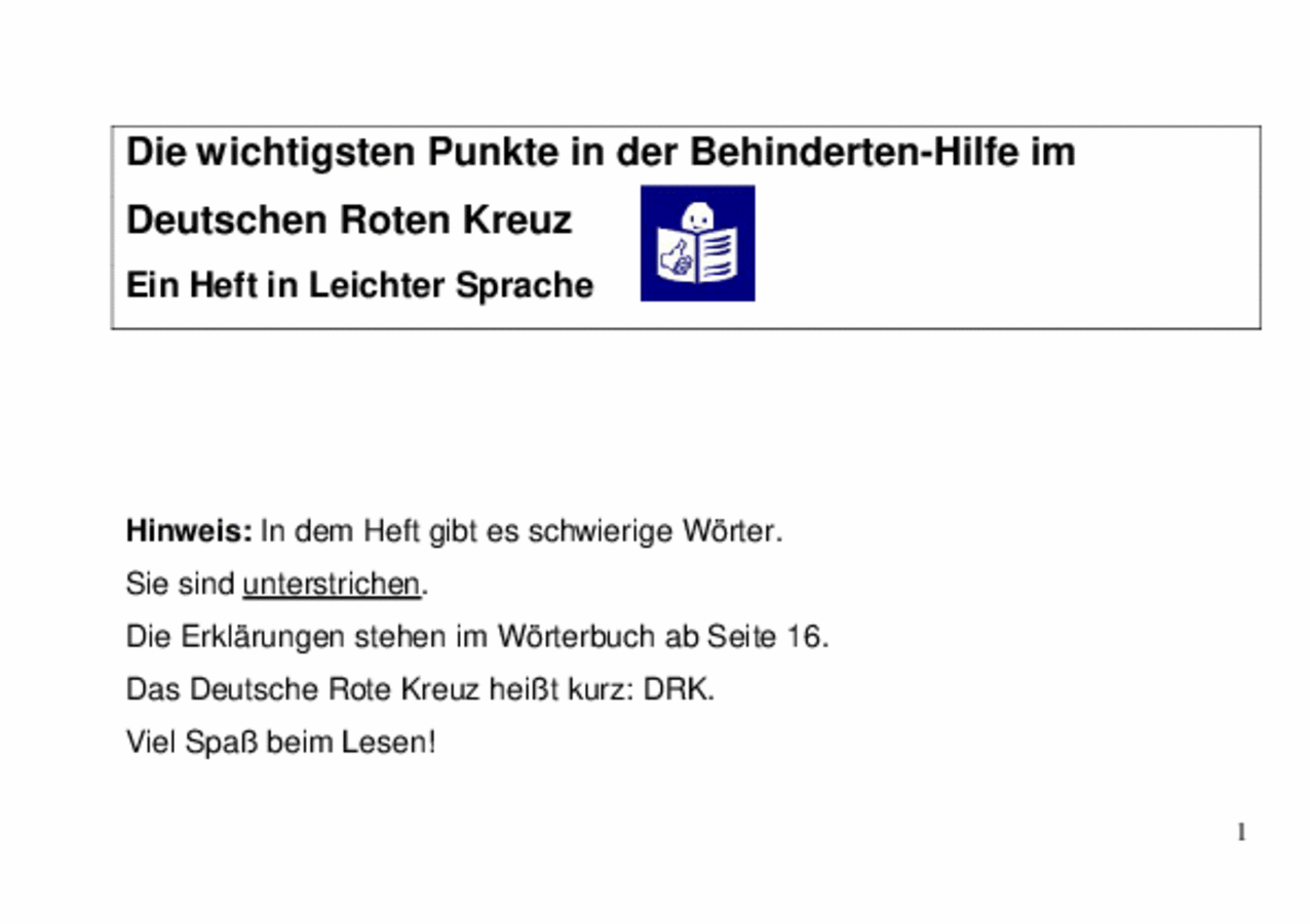 Die wichtigsten Punkte in der Behinderten-Hilfe im Deutschen Roten Kreuz