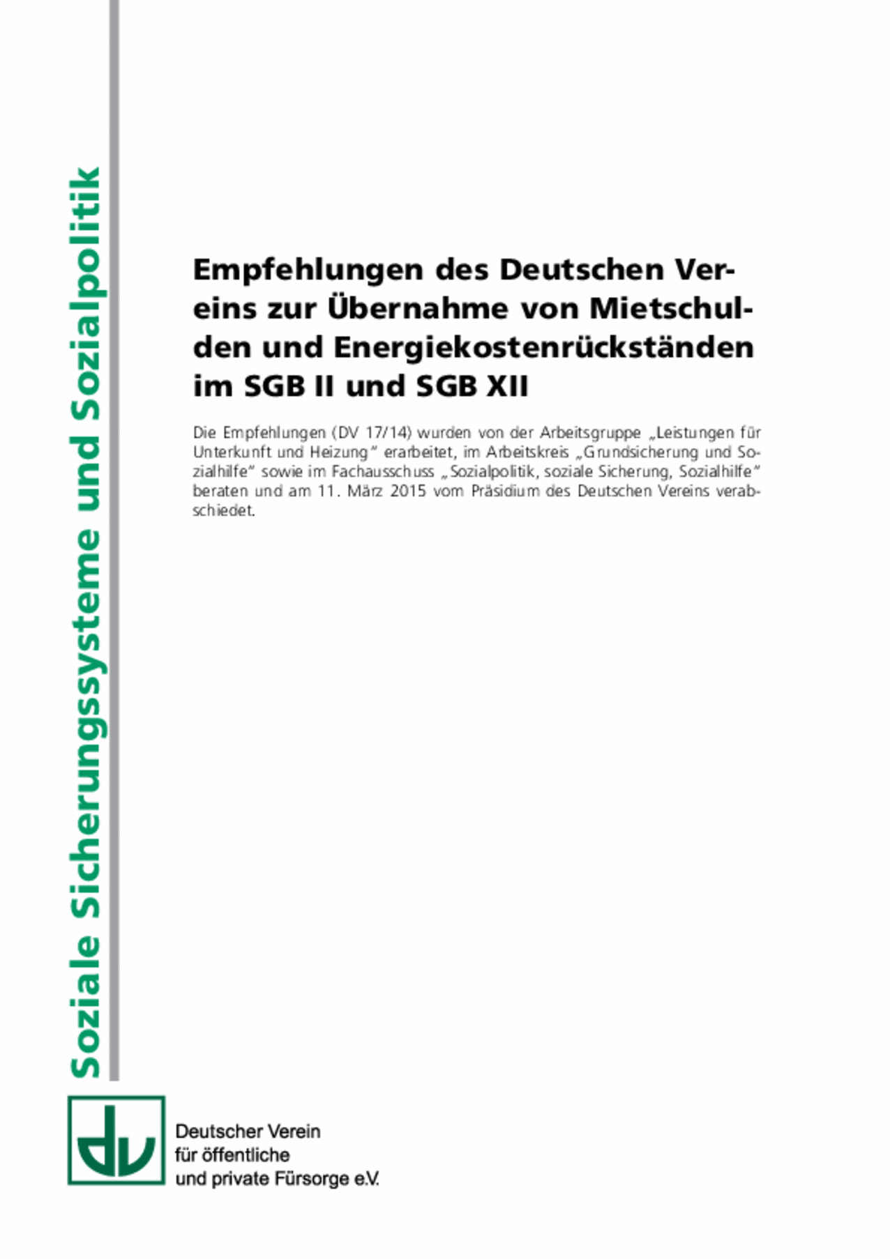 Empfehlungen des Deutschen Vereins zur Übernahme von Mietschulden und Energiekostenrückständen im SGB II und SGB XII