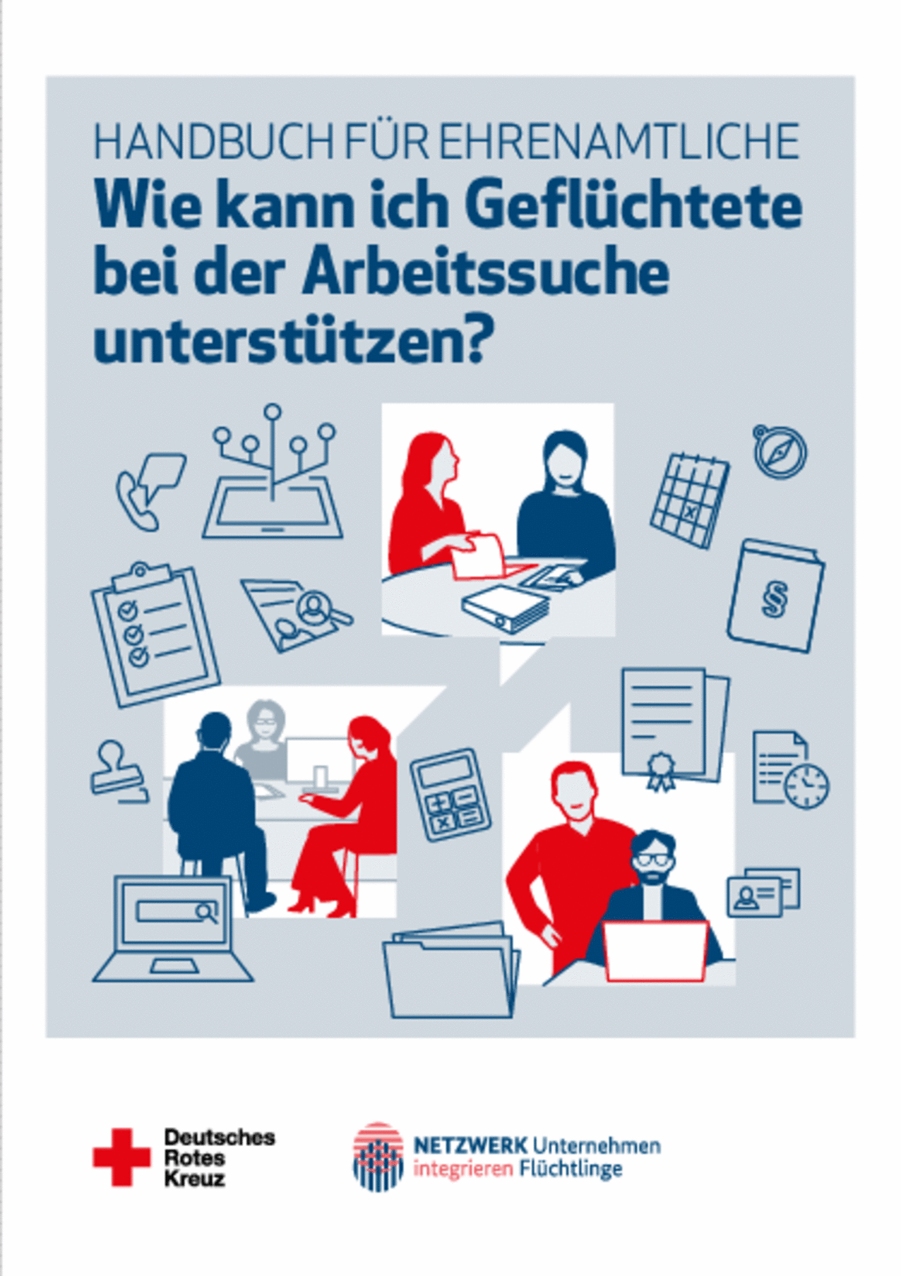 Gemeinsame Veröffentlichung von DRK und NETZWERK Unternehmen integrieren Flüchtlinge mit Wissen und Tipps zur Begleitung von geflüchteten Menschen bei der Integration in Arbeit. Überarbeitete Neuauflage August 2025.