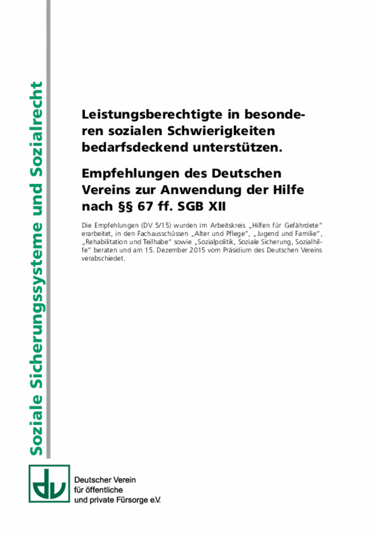 Leistungsberechtigte in besonderen sozialen Schwierigkeiten bedarfsdeckend unterstüzen. Empfehlungen des Deutschen Vereins zur Anwendung der Hilfe nach §§ 67 ff. SGB XII