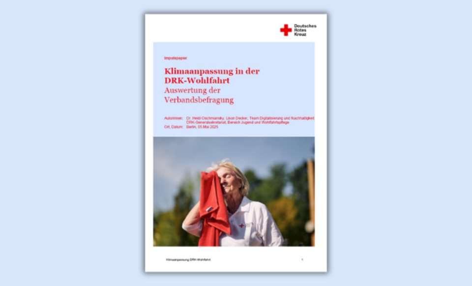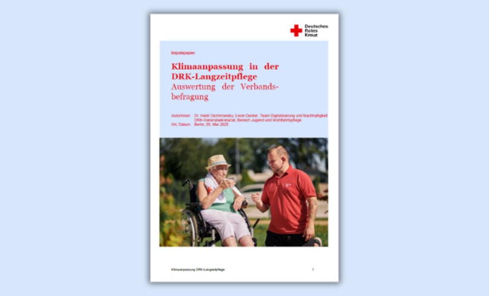 Hitzewellen, Hochwasser und andere Folgen der Klimakrise bedrohen schon heute die Gesundheit der Menschen in Deutschland. Die Klimakrise führt dazu, dass solche Ereignisse weiter zunehmen werden. Besonders Menschen, die bereits im Alltag auf Unterstützung angewiesen sind, sind in Wetterextremen stark gefährdet. In dem Projekt „Klimaanpassung in der DRK-Wohlfahrtspflege“ werden Maßnahmen zur Vorbereitung auf und zur Bewältigung von Wetterextremen entwickelt. Dabei liegt der Schwerpunkt bei Einrichtungen der DRK-Langzeitpflege.