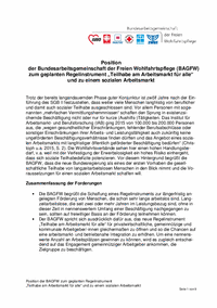 Position der Bundesarbeitsgemeinschaft der Freien Wohlfahrtspflege (BAGFW) zum geplanten Regelinstrument „Teilhabe am Arbeitsmarkt für alle“ und zu einem sozialen Arbeitsmarkt.