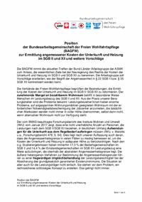 Position der Bundesarbeitsgemeinschaft der Freien Wohlfahrtspflege (BAGFW) zur Ermittlung angemessener Kosten der Unterkunft und Heizung im SGB II und XII und weitere Vorschläge.