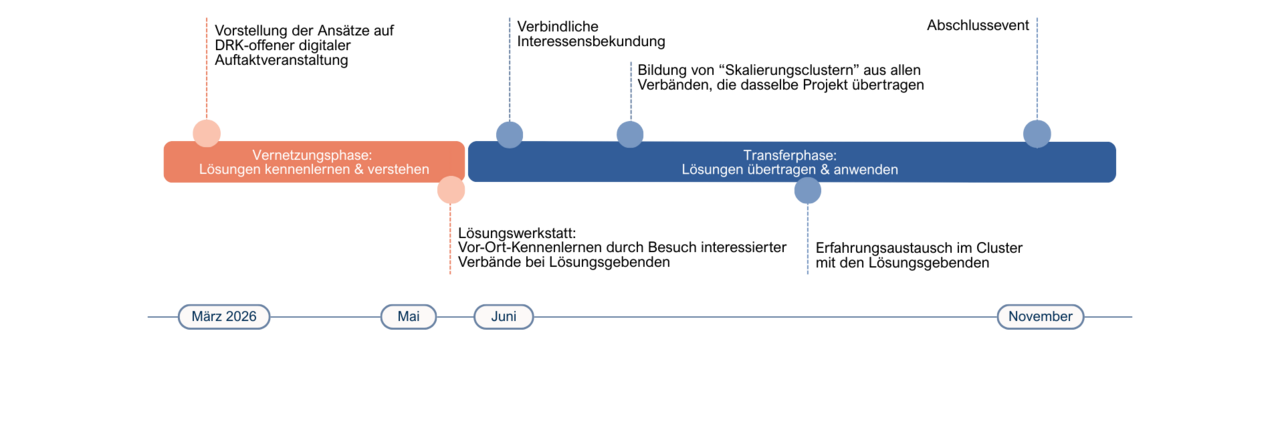 Mit DRK-Solutions unterstützt das DRK-Generalsekretariat die Übertragung bestehender, innovativer und wirkungserprobter Ansätze in den Verband – um Ressourcen zu bündeln und die Erfahrungen, die an einem Ort gemacht wurden, an anderen zu nutzen. Ziel ist ein Matching von Verbänden mit ähnlichen Fragestellungen und Problemlagen.